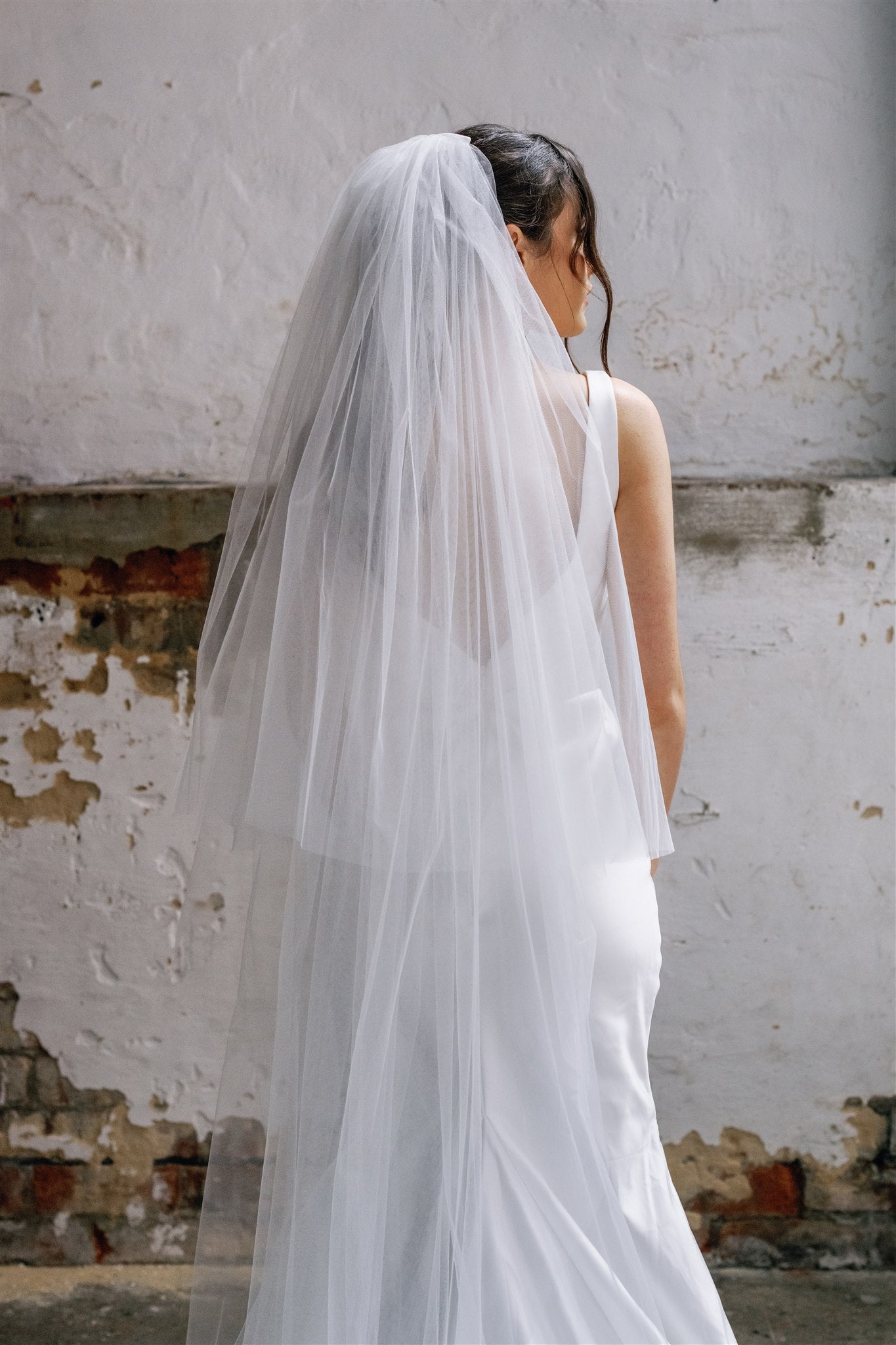 The Sabrina veil is a stunning two tier cathedral length veil with a beautiful triangular pattern of diamante’s lovingly placed at the centre back of the train of the veil. As the light catches these diamante’s they absolutely glisten!