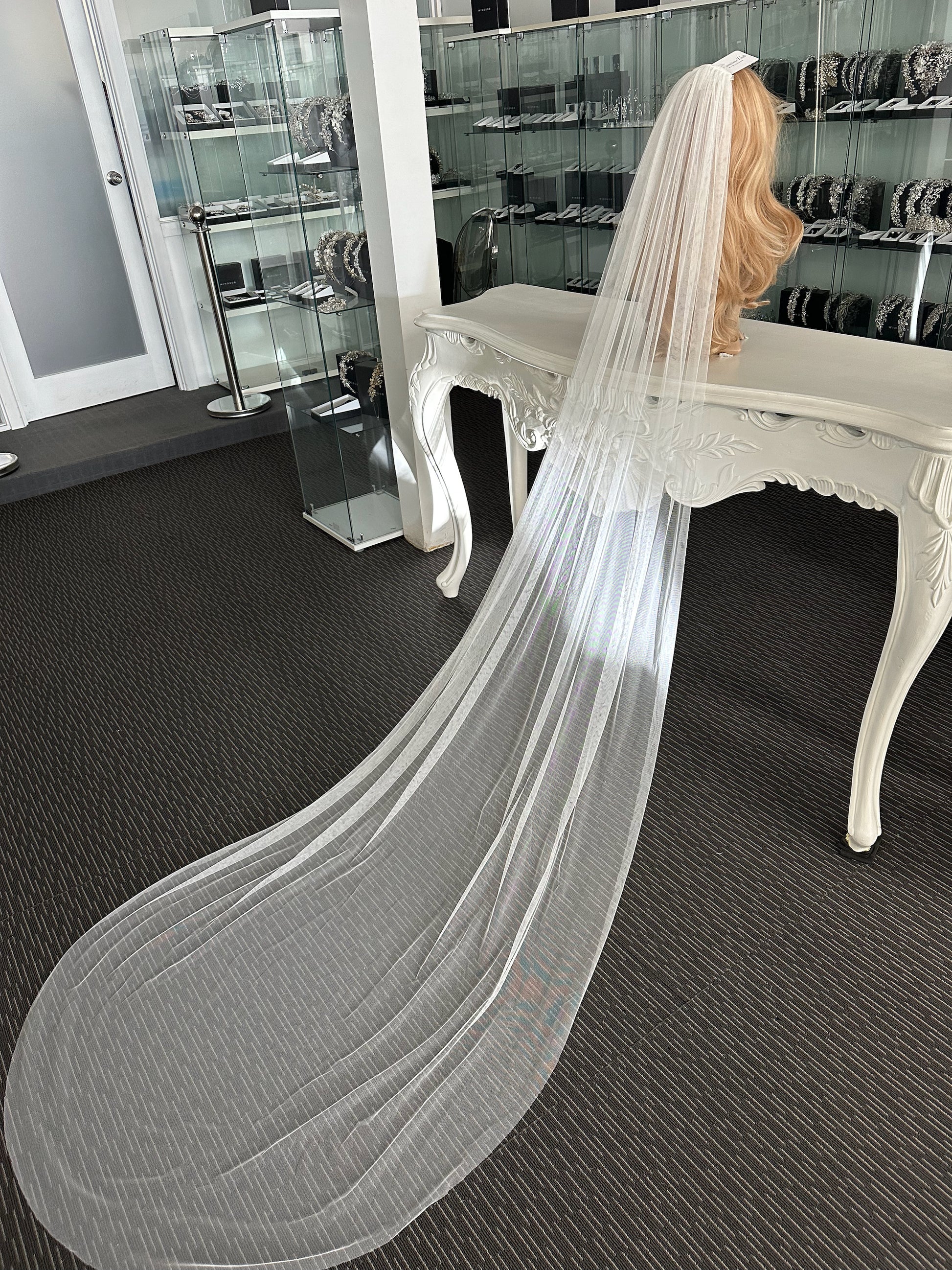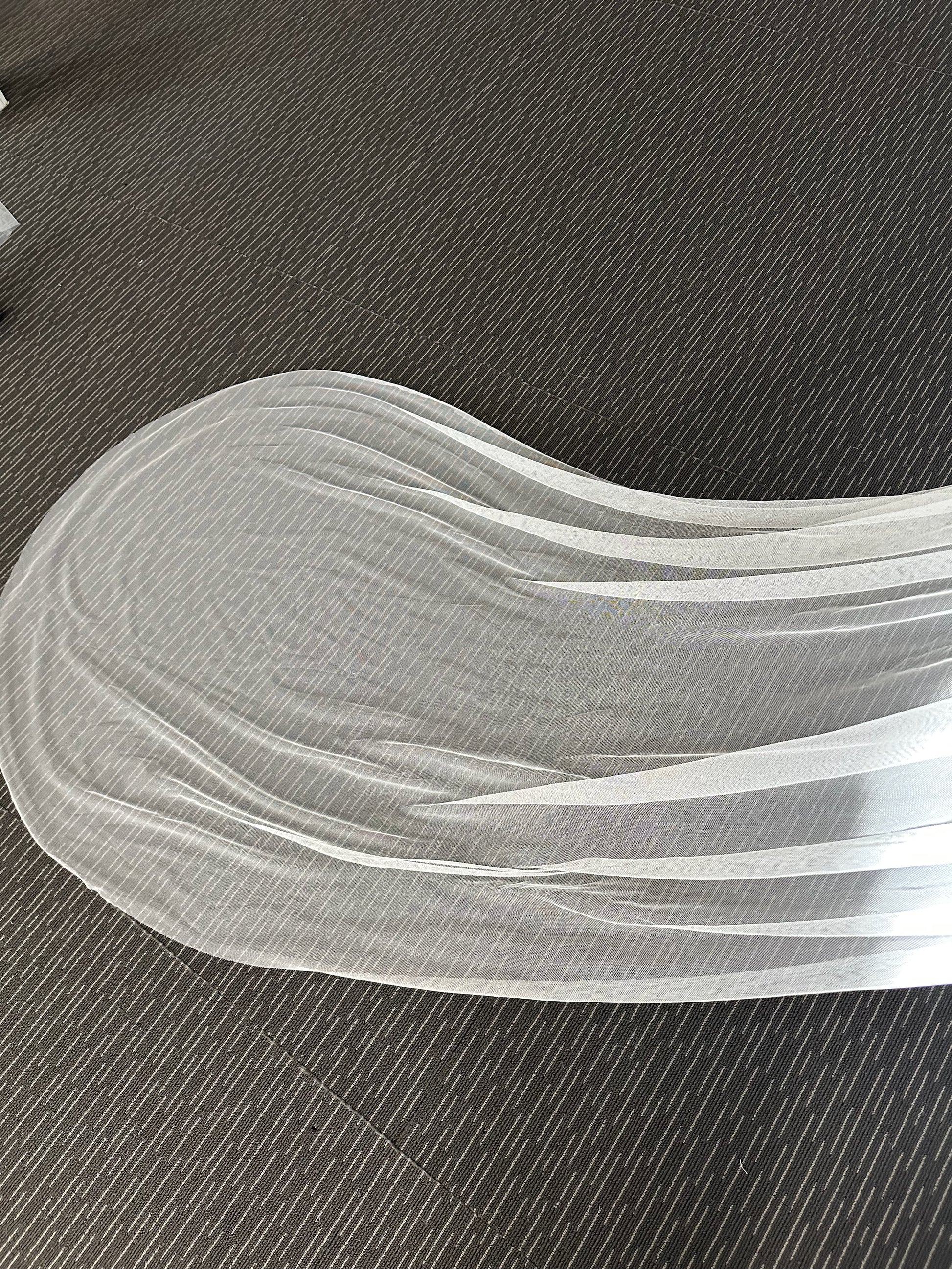 Login to see priceCrafted from exquisite silk tulle, this veil embodies ethereal elegance with its whisper-soft texture and cloud-like drape. The raw edge finish adds contemporary sophistication to your bridal look. Fully customisable in size and shape —choose your preferred length or opt for a graceful two-wing design for added dimension and movement. A timeless piece that captures the essence of refined beauty.