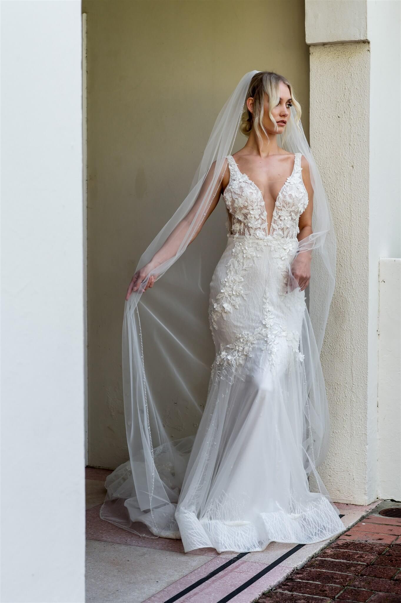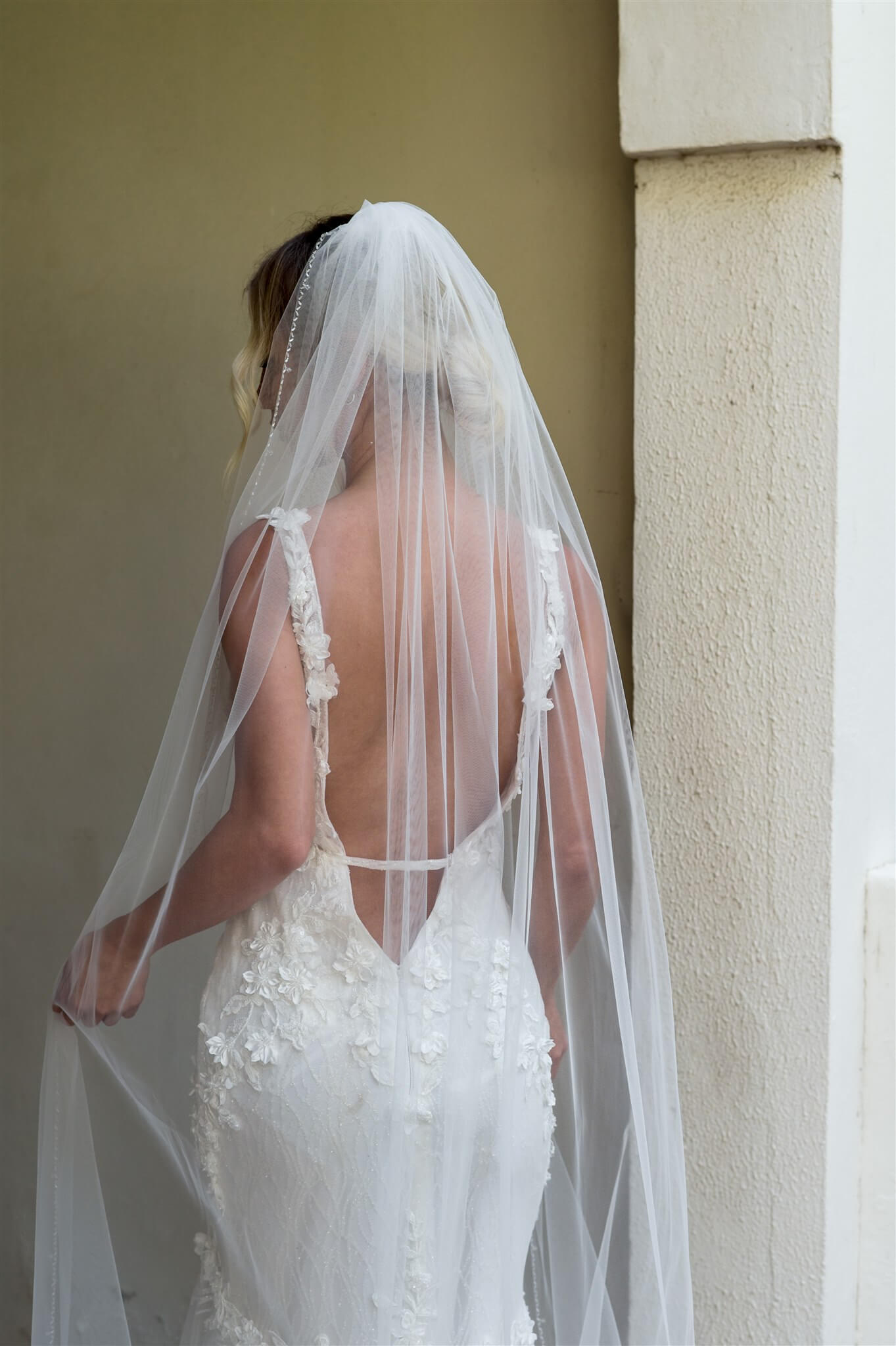 This veil would be suited to any bride wanting a classy yet modern cathedral length veil that is both delicate and elegant.